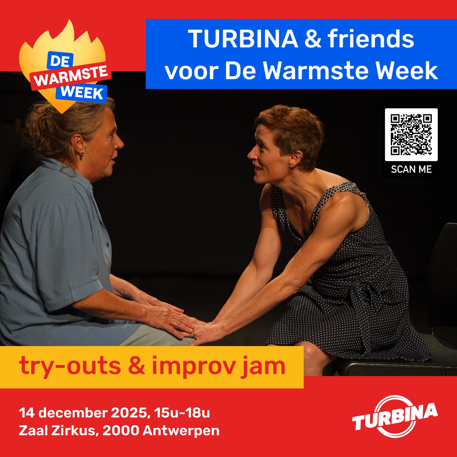 TURBINA & friends, bestaat uit try-outs met daarrond geïmproviseerde scènes. Voor de editie op 14 december 2025 gaat de opbrengst naar De Warmste Week voor het zichtbaarder maken van endometriose.
